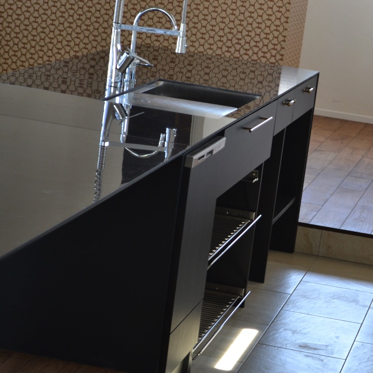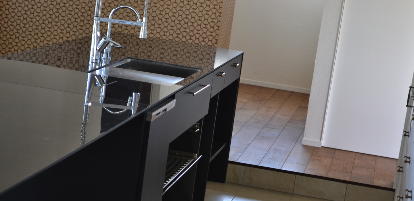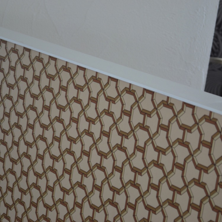 お客様とインテリアの打ち合わせ中、エルメスが昔からお好きだというお話に花が咲きました。多くの女性があこがれるエルメス。そこまでお好きなら壁紙をインテリアに…と、お話がどんどんふくらんでいきました。 実際に使用するのにどこがいいか、奥様がいつも目にし、たたずまれるスペ―ス・・・WICに併設されたドレッサーコーナーにしましょうとなりました。 周辺のタイルやキッチンなどとの組み合わせも意識し、色、柄を選んでいきました。 次のご自宅での打ち合わせ中、宅配便が来て、偶然にもその壁紙が届きました。 奥様と2人で息をのみながら開封し、見て感動したあの一瞬は、今でも忘れられない楽しくて華やかな思い出です。